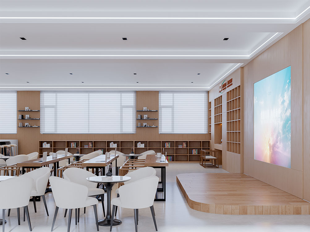 臨清國(guó)網(wǎng)職工之家裝修效果以 “溫馨實(shí)用 + 電力特色” 為核心,整體采用暖白、淺藍(lán)為主色調(diào),搭配國(guó)網(wǎng)標(biāo)志性的紅色元素點(diǎn)綴??臻g劃分上,既有配備舒適沙發(fā)、綠植與書(shū)籍的休閑區(qū),方便職工放松休憩;也有設(shè)置乒乓球桌、健身器材的運(yùn)動(dòng)區(qū),滿(mǎn)足日常鍛煉需求;同時(shí)融入電力主題細(xì)節(jié),如墻面掛置電網(wǎng)作業(yè)場(chǎng)景裝飾畫(huà)、角落擺放小型電力設(shè)備模型,凸顯行業(yè)屬性;功能區(qū)還兼顧實(shí)用性,茶水間配備齊全廚具,活動(dòng)區(qū)預(yù)留靈活桌椅組合,可滿(mǎn)足職工聚餐、小型活動(dòng)等需求,整體營(yíng)造出兼具歸屬感與行業(yè)辨識(shí)度的溫馨空間,切實(shí)服務(wù)職工日常。