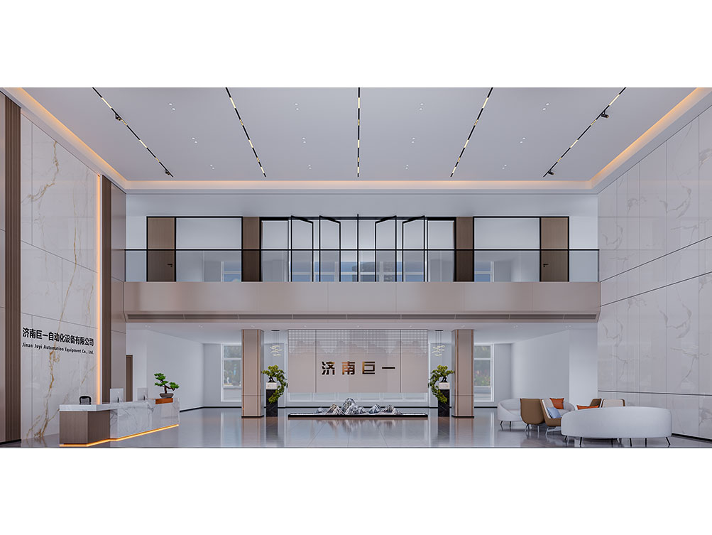 作為濟南辦公室裝修中企業(yè)形象型空間的代表,巨一自動化大堂以大理石飾面 + 金屬線條打造輕奢質(zhì)感:挑高空間搭配嵌入式燈光,強化大氣氛圍;弧形旋轉(zhuǎn)門與綠植點綴柔化冷硬,前臺與品牌墻的一體化設(shè)計精準傳遞企業(yè)形象,契合濟南辦公室裝修商務(wù)展示接待功能的核心需求,是濟南工業(yè)企業(yè)辦公空間的高端范本。