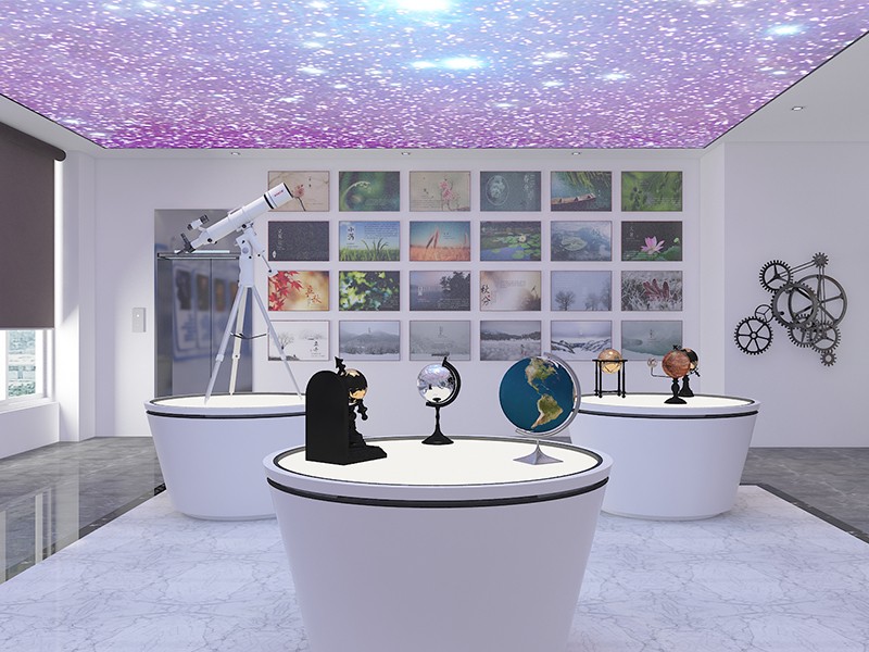 濟南有人物聯(lián)網(wǎng)技術(shù)有限公司展廳設(shè)計裝修效果,展廳主要是以白色和藍色搭配為主色調(diào)。在展廳內(nèi)高科技元素與未來感設(shè)計融為一體,通過一系列的展示,生動的描述了公司的物