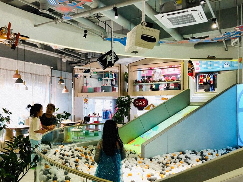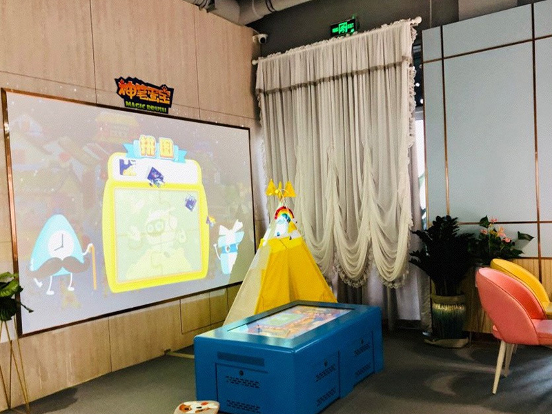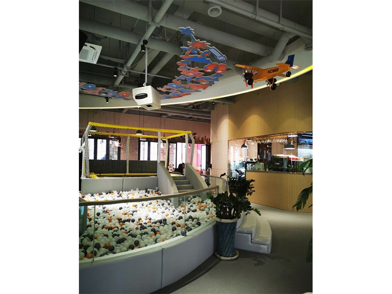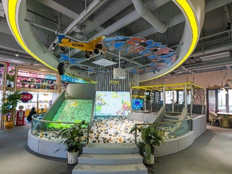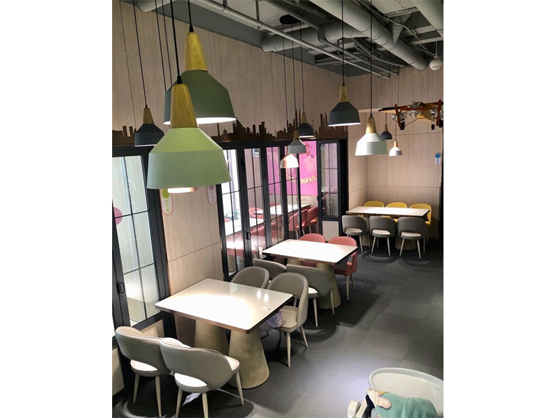 濟(jì)南森林象親子餐廳裝修施工完成效果圖以自然、溫馨為主題,門口有兩只小象在歡迎孩子們的到來,整個室內(nèi)以自然色彩為主色調(diào),里面還有一個小型的游樂場,能讓孩子們歡快的游玩。餐廳的墻上以卡通動漫為壁紙,激發(fā)孩子們的童真興趣。除此之外還有休息的地方,可以讓孩子們在童年的海洋里面暢游,在休息區(qū)還會有動畫片和玩具供孩子們游玩,餐廳的盤子、調(diào)味料盤瓶等一些也融合了卡通元素。