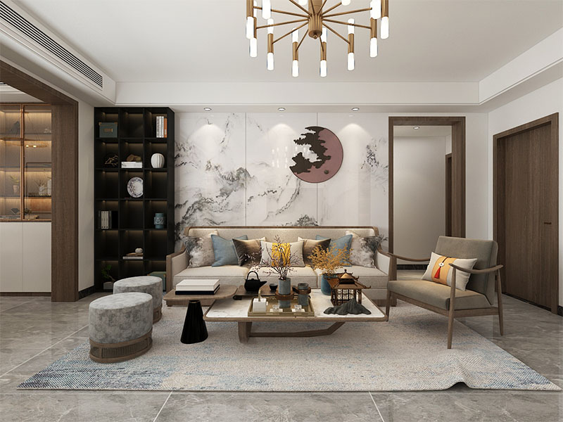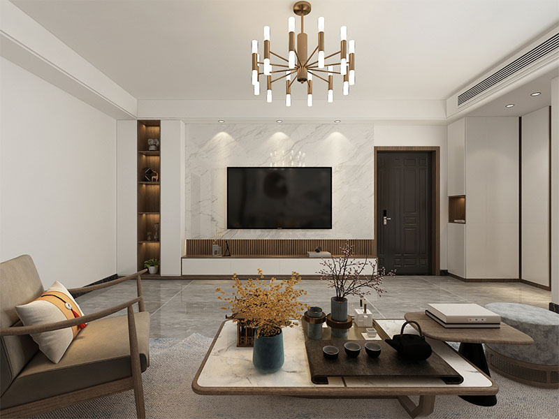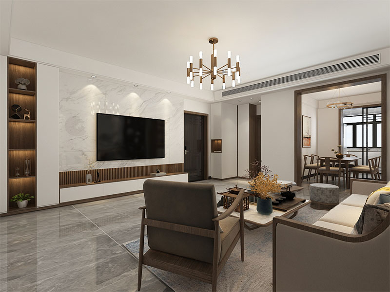 ??濟(jì)南阿達(dá)森裝飾為穎秀華府打造的現(xiàn)代極簡輕奢風(fēng)。淺米色大尺寸沙發(fā)柔化空間,搭配焦糖棕單人椅,用撞色拉出層次感;黑白紋理茶幾與同質(zhì)感背景墻呼應(yīng),高級又利落。深色木飾面 +