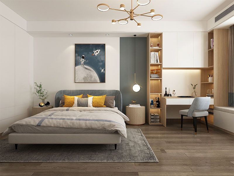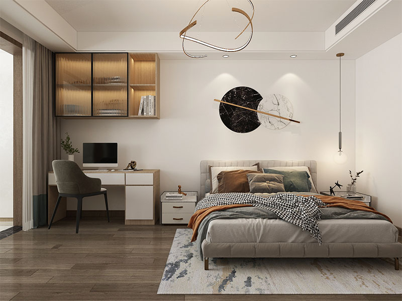 ??濟(jì)南阿達(dá)森裝飾為萬象東方設(shè)計的現(xiàn)代簡約風(fēng)裝修,以淺米色系打底,整面定制柜藏起雜亂的隱形收納巧思,正契合濟(jì)南寫字樓辦公室裝修里的高效空間利用邏輯;懸浮式電視柜的輕盈感