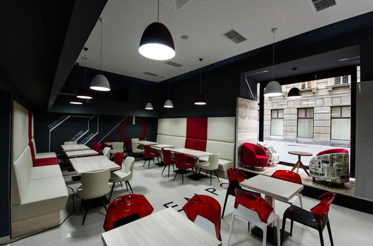 ??濟(jì)南甜品咖啡店的裝修設(shè)計(jì),以溫馨浪漫為主題,營(yíng)造出甜蜜而舒適的氛圍。店內(nèi)采用柔和的燈光與溫暖的色調(diào),采用了簡(jiǎn)潔的歐美風(fēng)格作為主色,通過(guò)紅白黑三色顯明的對(duì)比突出風(fēng)格。舒適的沙發(fā)與座椅,讓顧客在品嘗美味甜品與咖啡的同時(shí),得到心靈的休息和享受悠閑的午后時(shí)光。