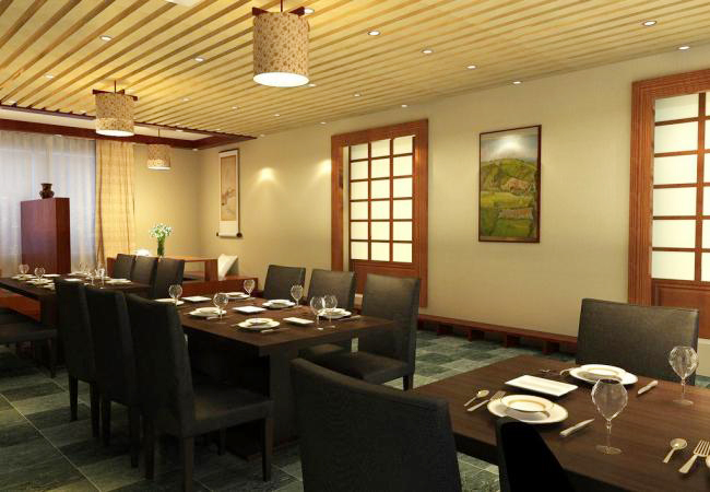 ??濟南南部某日本料理店裝修設(shè)計,充分融合了日本傳統(tǒng)元素和現(xiàn)代元素,采用以暗黃色為主的燈光設(shè)計。以體現(xiàn)日式風(fēng)格的清新自然。同時,墻面采用淡雅的米白色,搭配日式浮世繪風(fēng)格的掛畫或燈籠,增添一份文化韻味。讓顧客在品嘗美食的同時,也能感受到濃厚的日本風(fēng)情。整體設(shè)計旨在為顧客提供一個既舒適又充滿文化氣息的用餐環(huán)境。