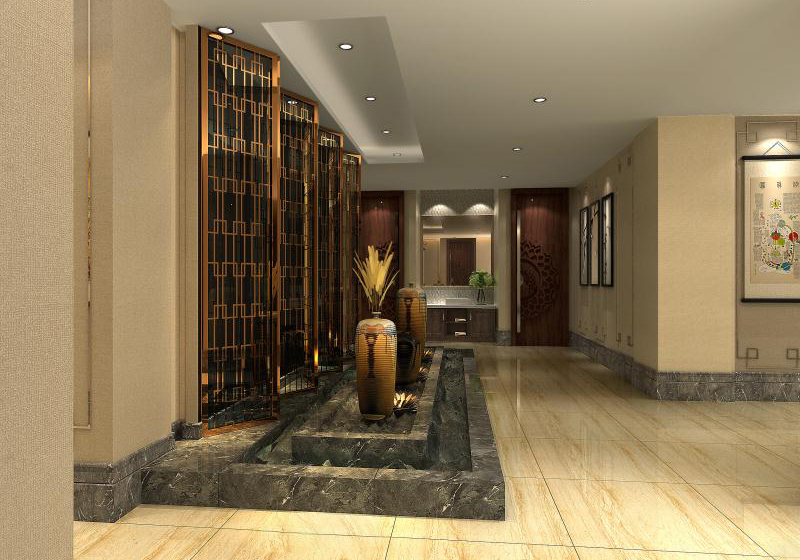公司為企業(yè)做的辦公室裝修設(shè)計(jì),整體以暖色調(diào)為主,燈光顏色的選用和地板的使用起到了與之相互照應(yīng)的作用,更襯托出整個(gè)辦公空間的暖色調(diào)。在顏色方面整體選取暗色調(diào),給人以莊重嚴(yán)肅之感。在燈的裝飾上以及天花的花紋上又看出了中國(guó)式的風(fēng)格。