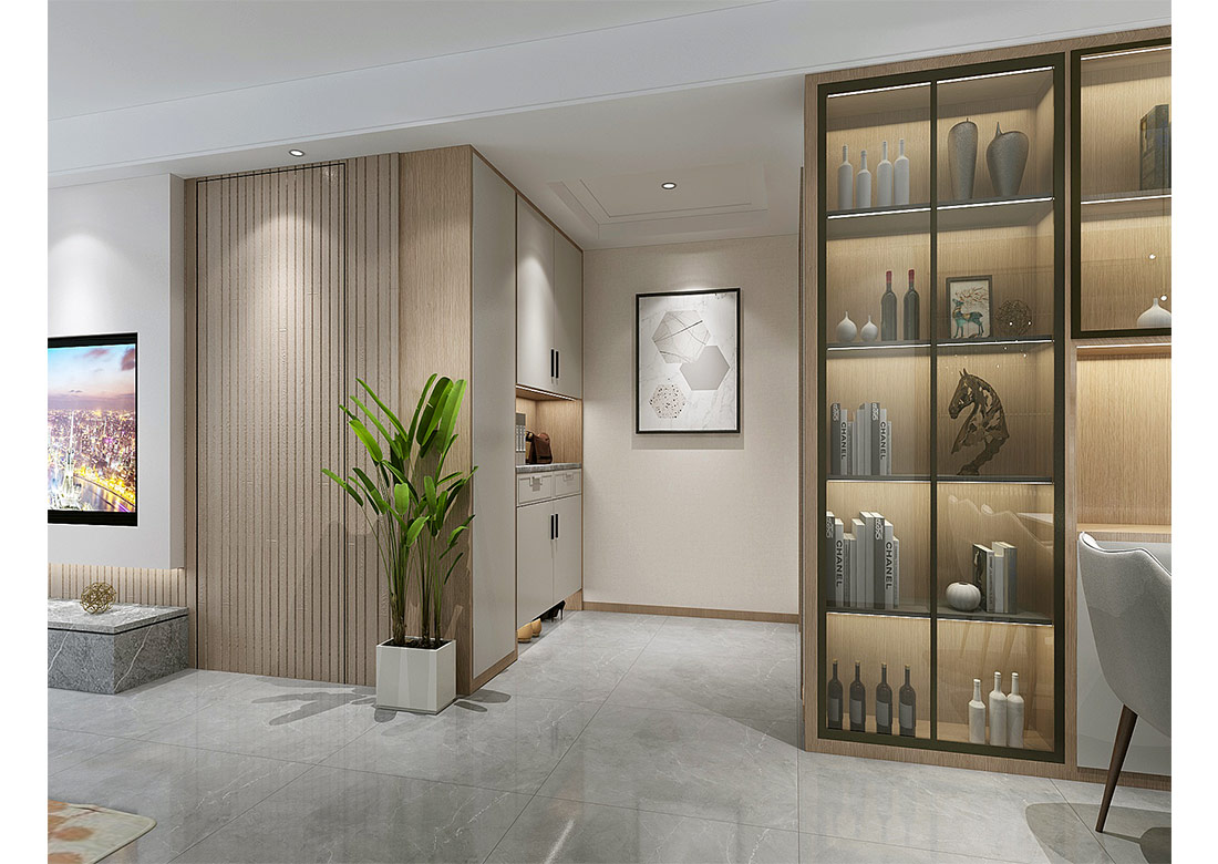 ??濟南阿達森裝飾為萬象東方設計的現(xiàn)代簡約風裝修,以淺米色系打底,整面定制柜藏起雜亂的隱形收納巧思,正契合濟南寫字樓辦公室裝修里的高效空間利用邏輯;懸浮式電視柜的輕盈感