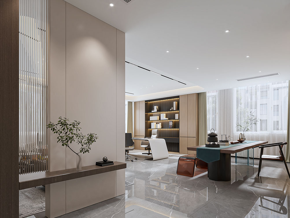 博思達(dá)辦公區(qū)裝修效果以 “高效協(xié)作 + 現(xiàn)代簡約” 為核心,主色調(diào)選用淺灰、原木色與白色,營造清爽通透且兼具活力的辦公氛圍??臻g布局上,采用開放工位與獨(dú)立會議室結(jié)合的設(shè)計,開放區(qū)用低矮隔斷劃分區(qū)域,方便員工即時溝通,每張工位配備多功能收納柜與可調(diào)節(jié)臺燈;獨(dú)立會議室按需求分小型洽談室與大型會議空間,均配備高清投影、白板與隔音棉,滿足不同協(xié)作場景;同時融入實用細(xì)節(jié),茶水間設(shè)長條操作臺與儲物柜,墻面點綴簡約裝飾畫與綠植,休閑角擺放舒適沙發(fā)與小茶幾,供員工短暫放松;整體空間無冗余設(shè)計,既保證辦公效率,又通過原木元素與軟裝搭配傳遞溫馨感,契合現(xiàn)代辦公對功能性與舒適度的雙重需求。