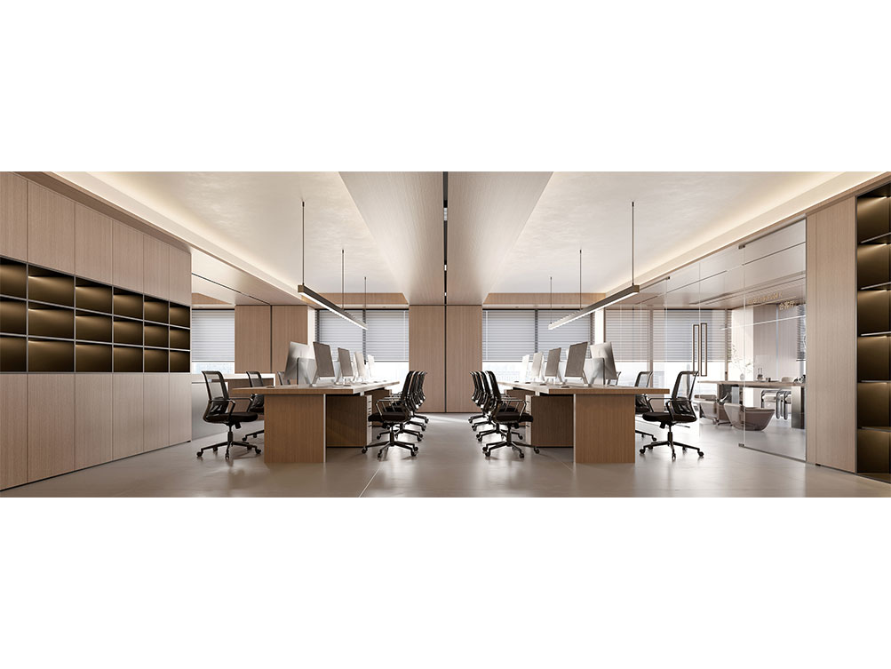 濟(jì)南奧克斯中心辦公室以溫潤(rùn)木調(diào)為主線,搭配淺灰地面與嵌入式燈光,打造出濟(jì)南辦公室裝修中標(biāo)志性的簡(jiǎn)奢氛圍。開(kāi)放式長(zhǎng)桌適配團(tuán)隊(duì)協(xié)作,玻璃隔斷既保障通透又劃分功能區(qū),嵌入式柜體兼顧收納與美學(xué),結(jié)合柔光設(shè)計(jì),契合濟(jì)南商務(wù)空間 “實(shí)用 + 質(zhì)感” 的裝修需求,是濟(jì)南辦公室裝修中現(xiàn)代高效風(fēng)的典型呈現(xiàn)。