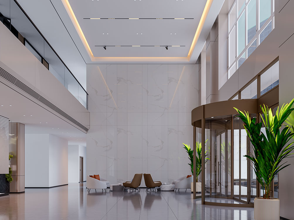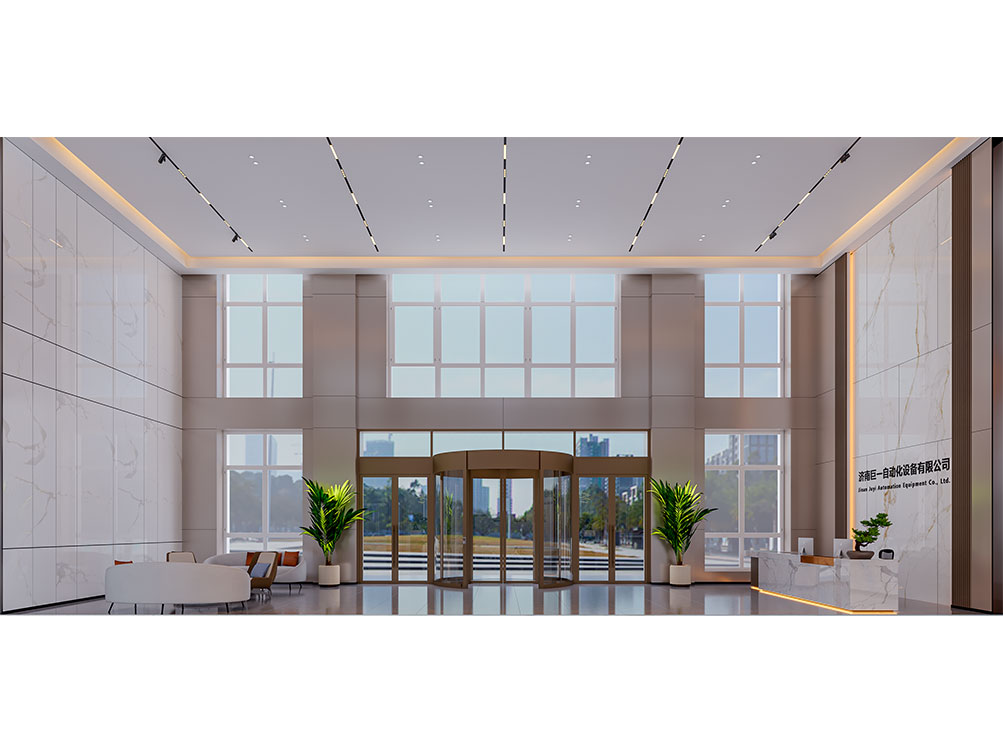 作為濟南辦公室裝修中企業(yè)形象型空間的代表,巨一自動化大堂以大理石飾面 + 金屬線條打造輕奢質(zhì)感:挑高空間搭配嵌入式燈光,強化大氣氛圍;弧形旋轉(zhuǎn)門與綠植點綴柔化冷硬,前臺與品牌墻的一體化設(shè)計精準傳遞企業(yè)形象,契合濟南辦公室裝修商務(wù)展示接待功能的核心需求,是濟南工業(yè)企業(yè)辦公空間的高端范本。