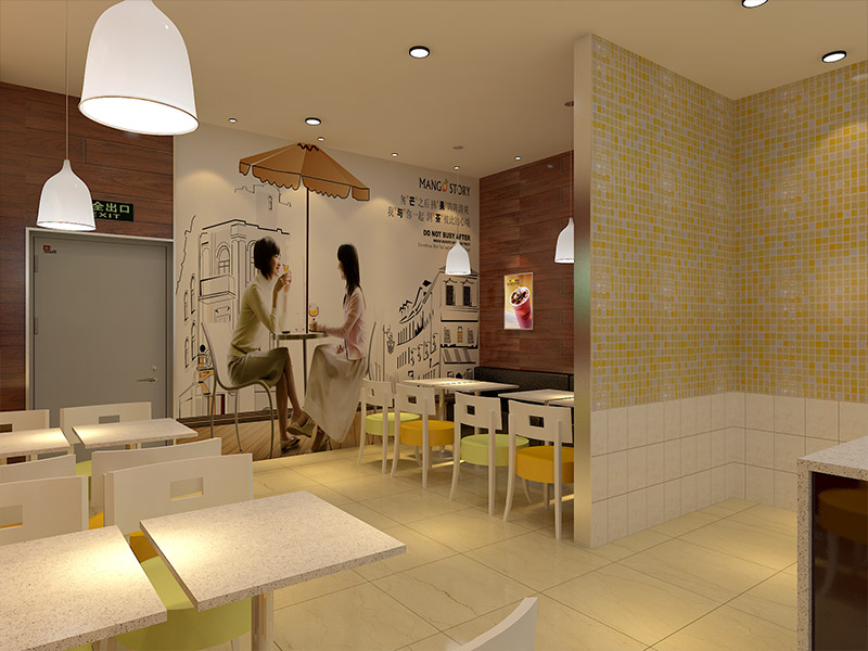 設(shè)計理念: 濟南奶茶店甜品店裝修設(shè)計-芒果主題飲吧裝修效果溫馨而甜蜜,以暖色調(diào)為主,營造出浪漫氛圍。店內(nèi)燈光柔和,照亮每一款精致甜品與飲品,令人垂涎欲滴。墻面裝飾甜蜜主題貼紙,增添趣味性。座位區(qū)布局舒適,適合朋友小聚或情侶約會,營造輕松愉悅的用餐體驗。整體設(shè)計既符合年輕人的審美,又充滿甜蜜幸福感。